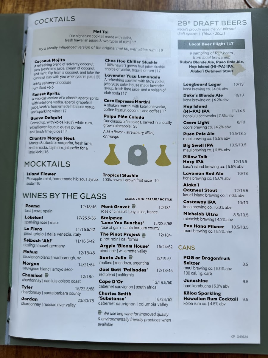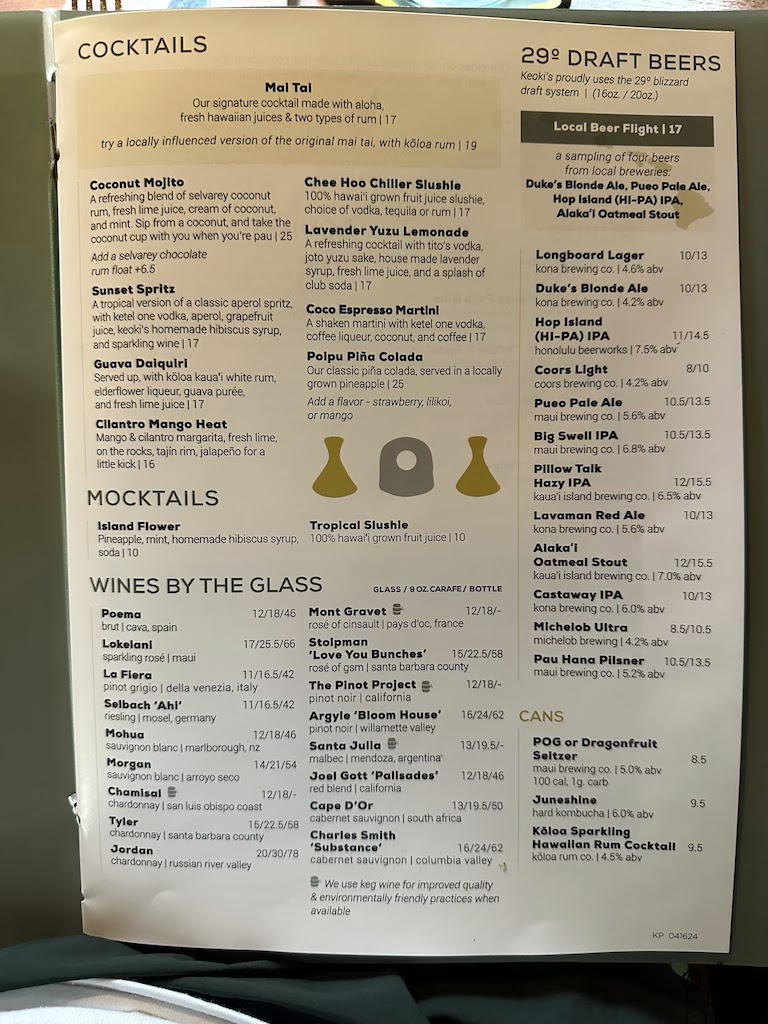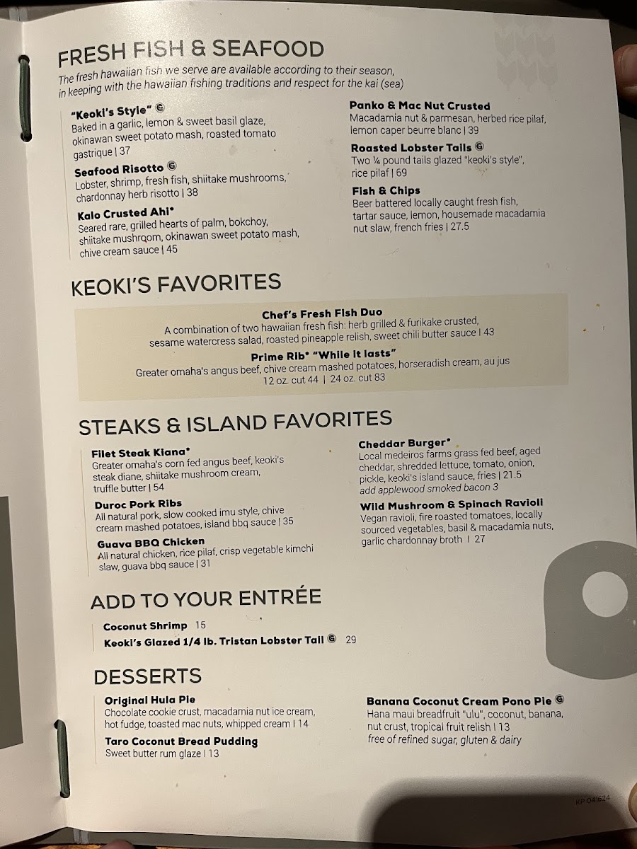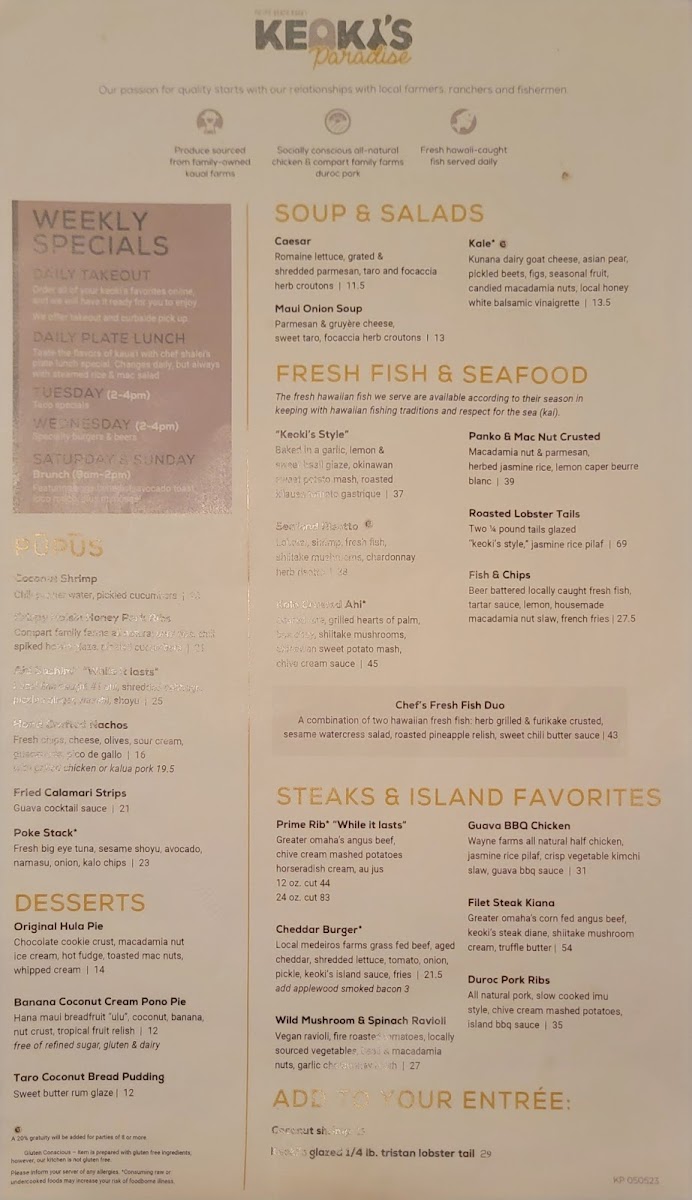 Keoki's Paradise Menu